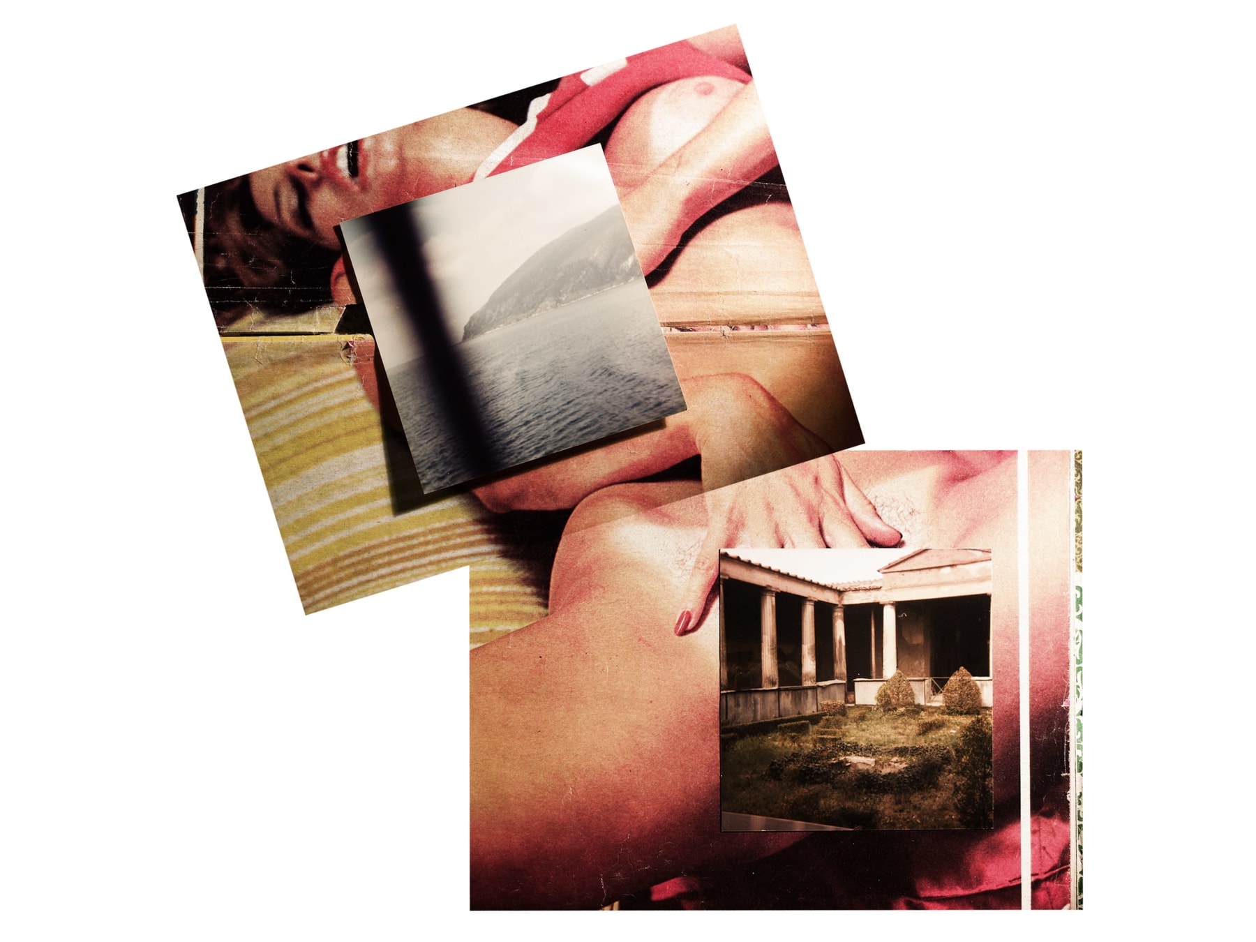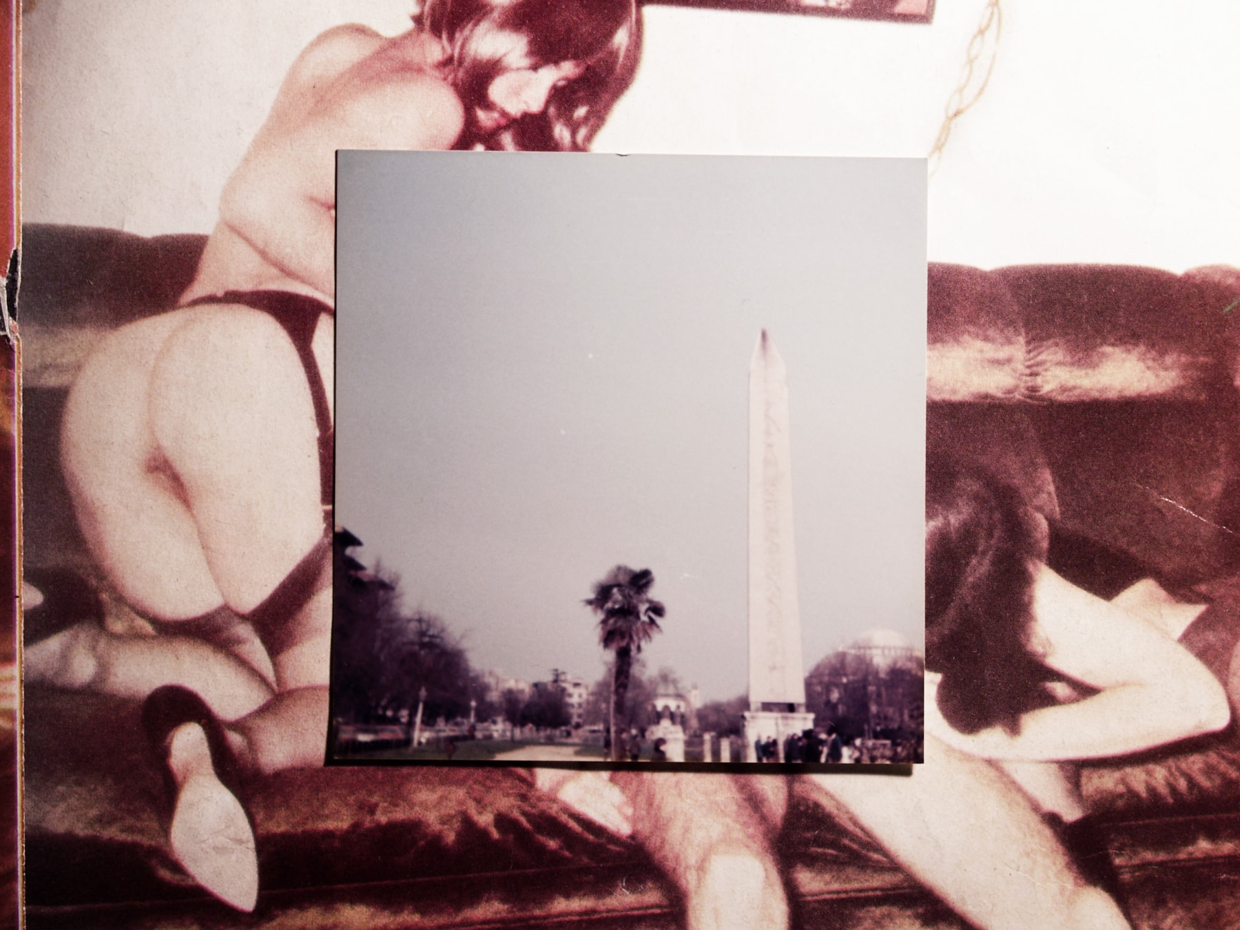 A visual metaphor for the ego and the id of a 14 year old boy - myself in 1978. The snapshots were taken on a school cruise which is also where the pornography was acquired. At the time, the pornography seemed more interesting than the historical sights. It was the photographs that were shown on my return home, not the pornography. In this sense these pictures represent what we choose to show, juxtaposed with what we feel we cannot show. They also invite a questioning of how we view photographic images from distinct genres.